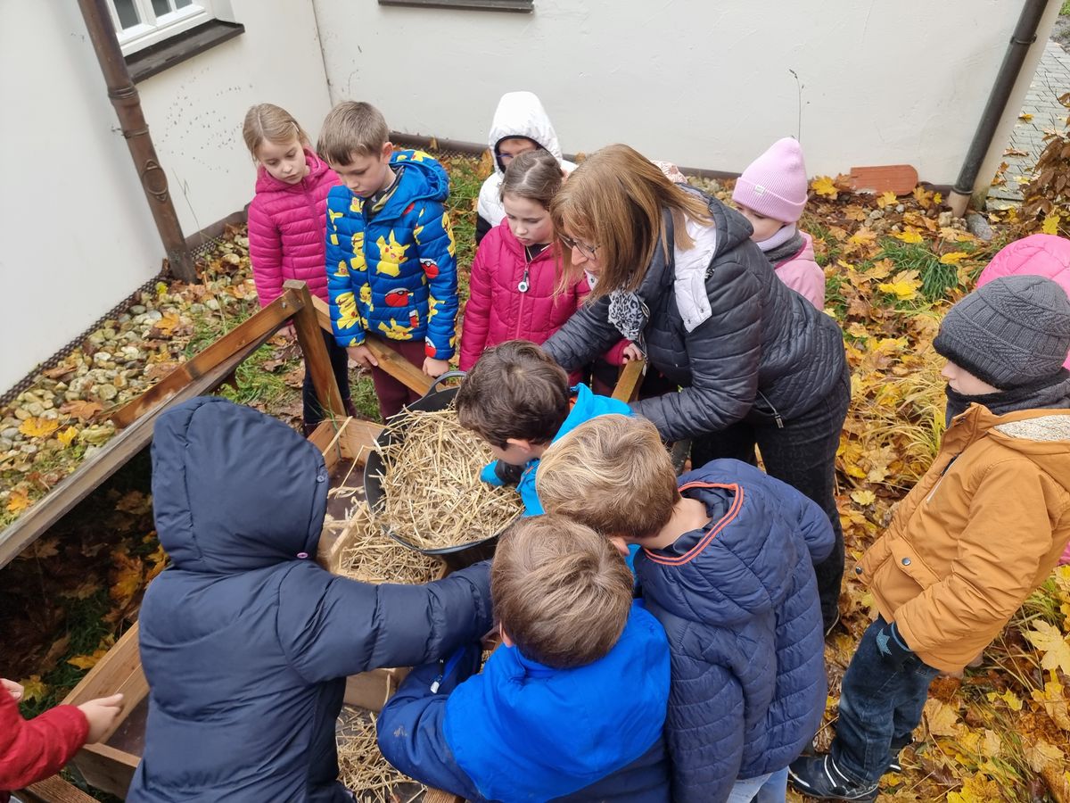 Auch in diesem Jahr durften die Schülerinnen und Schüler wieder Igel „fit“ für den anstehenden Winterschlaf machen. Anfang Oktober wurde uns von der „Privaten Igelhilfe Reisbach“ zunächst ein Igel zum „Aufpäppeln“ anvertraut. Wenig später gesellte sich auch noch ein zweiter Igel dazu, der das nötige Mindestgewicht von 600 gr. für den Winterschlaf bei weitem noch nicht erreicht hatte. Beide Igel wurden die nächsten Wochen bevorzugt mit einem Gemisch aus Mehlwürmern und Soldatenfliegenlarven gefüttert. Nach den Herbstferien konnten beide Igel mit einem stolzen Gewicht von jeweils über 700gr. in das Außengehege der Grundschule „verlegt“ werden, wo sie den Winterschlaf verbringen werden. Nach dem Aufwachen im Frühling dürfen die beiden Stacheltiere dann ganz in die Freiheit entlassen werden.