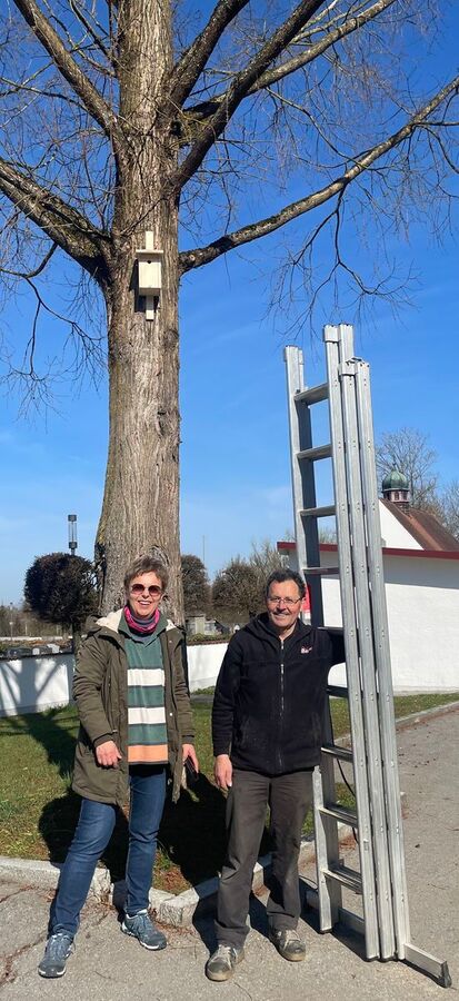 Aber apropos hoch hinaus- als Umweltschule in Europa setzt die Grundschule jährlich zwei Projekte um. Ein Teilprojekt konnte in den letzten Tagen vor den Ferien mit der tatkräftigen Unterstützung des Gartenbauvereins, der dankenswerterweise auch die Kosten für das Material übernahm, fertig gestellt werden. Mit Birgit Ertl, Lothar Hafner und Siegfried Ketterl entstanden mit kleinen und großen Händen 10 Nistkästen, die nun rund um die Schule- und gerade noch rechtzeitig- seit letztem Samstag in luftiger Höhe zum Erstbezug einladen.