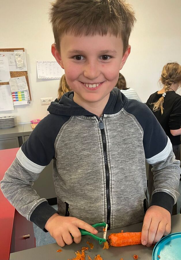 Immer montags um 12.15 Uhr geht es in der kleinen Schulküche hoch her, damit pünktlich um 13.00 Uhr gegessen werden kann. Und was noch wichtig ist, es bleibt nichts übrig und der achtsame Umgang mit Lebensmitteln- Was ist noch da? Was muss nächste Woche verarbeitet werden? - wird gelebt und bleibt hoffentlich weiter eine feste Einrichtung an der Schule.